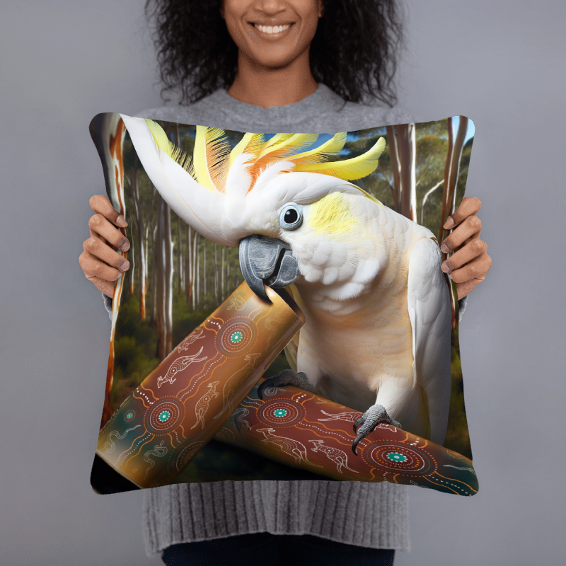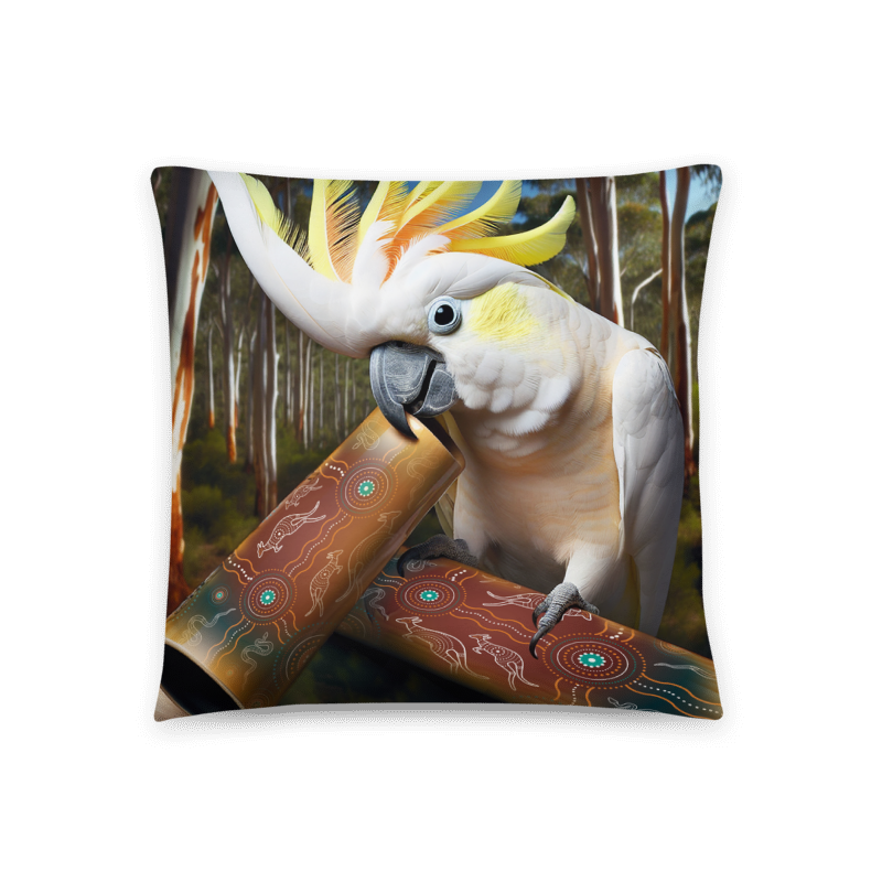 Brighten up your home or caravan with these playful 18" x 18" designer cushion covers featuring Chalanni and his Didgeridoo. The vibrant colors and iconic Australian bird will add a touch of fun and quirkiness to any room. (No need to travel Down Under to bring some Aussie vibes to your decor!)
